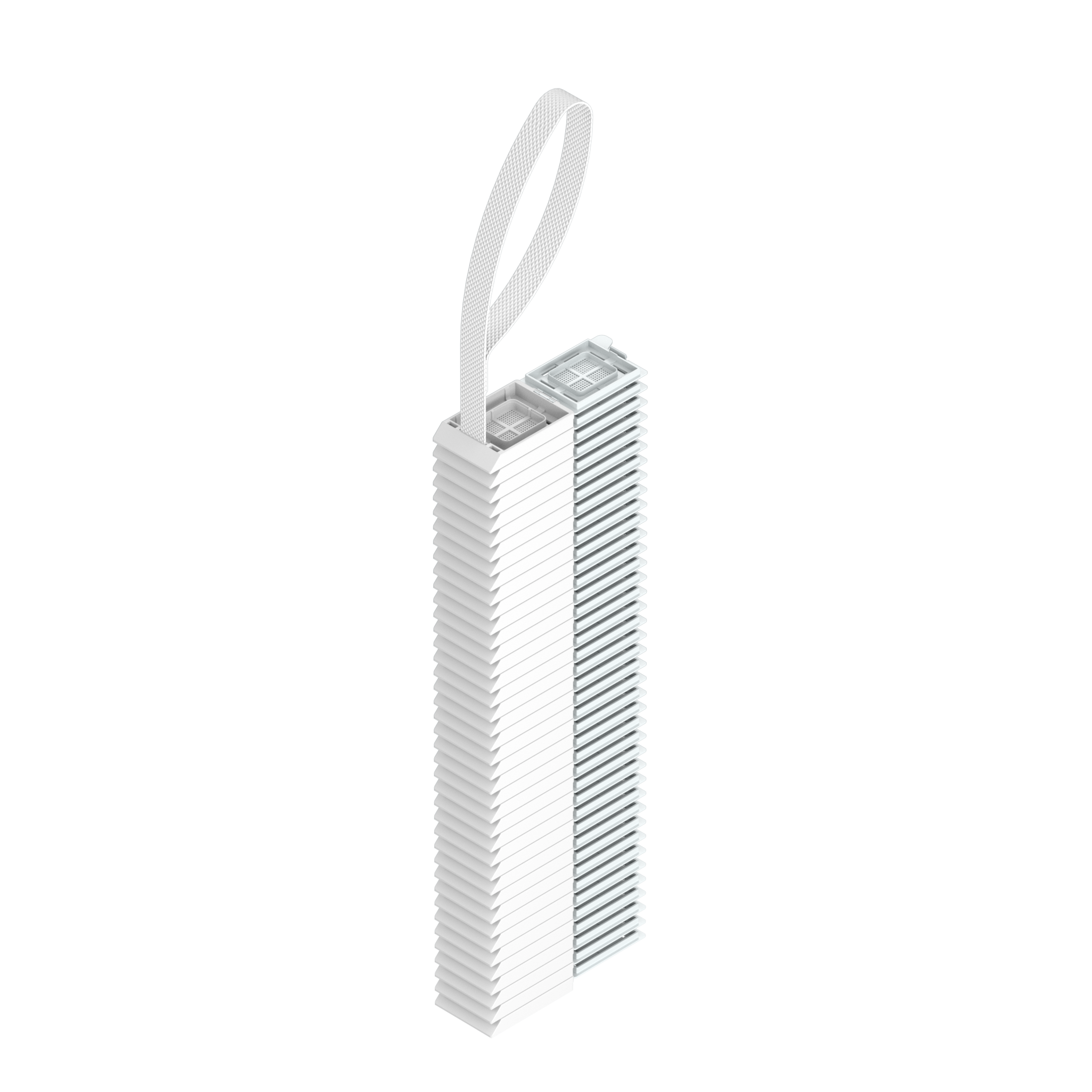 Die Einbettkassetten sind für die Verwendung mit Kassettendruckern gebrauchsfertig an einem Band vorgestapelt. Auf einem Band sind 40 Einbettkassetten mit Deckel aufgefädelt.