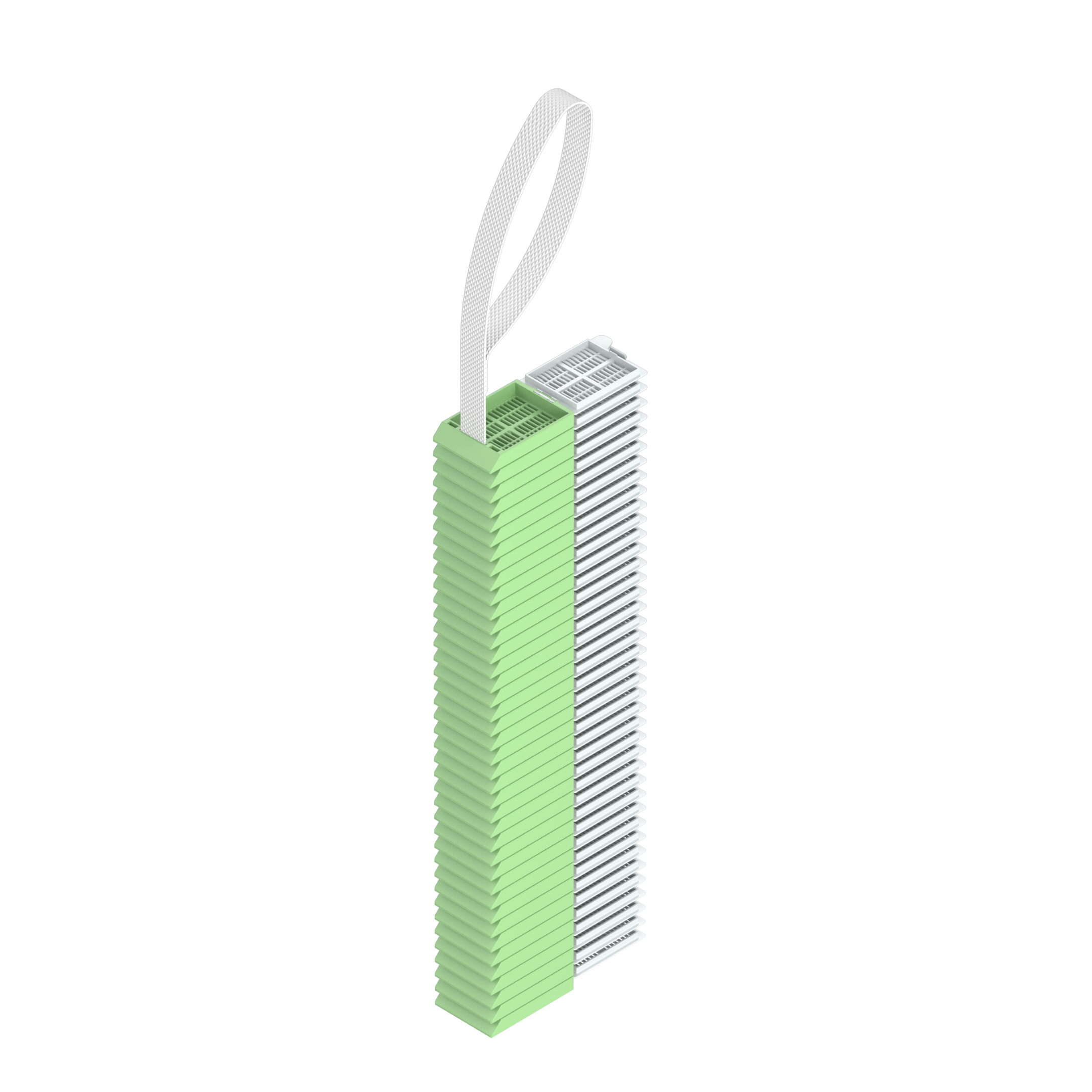 Die Einbettkassetten sind für die Verwendung mit Kassettendruckern gebrauchsfertig an einem Band vorgestapelt. Auf einem Band sind 40 Einbettkassetten mit Deckel aufgefädelt.