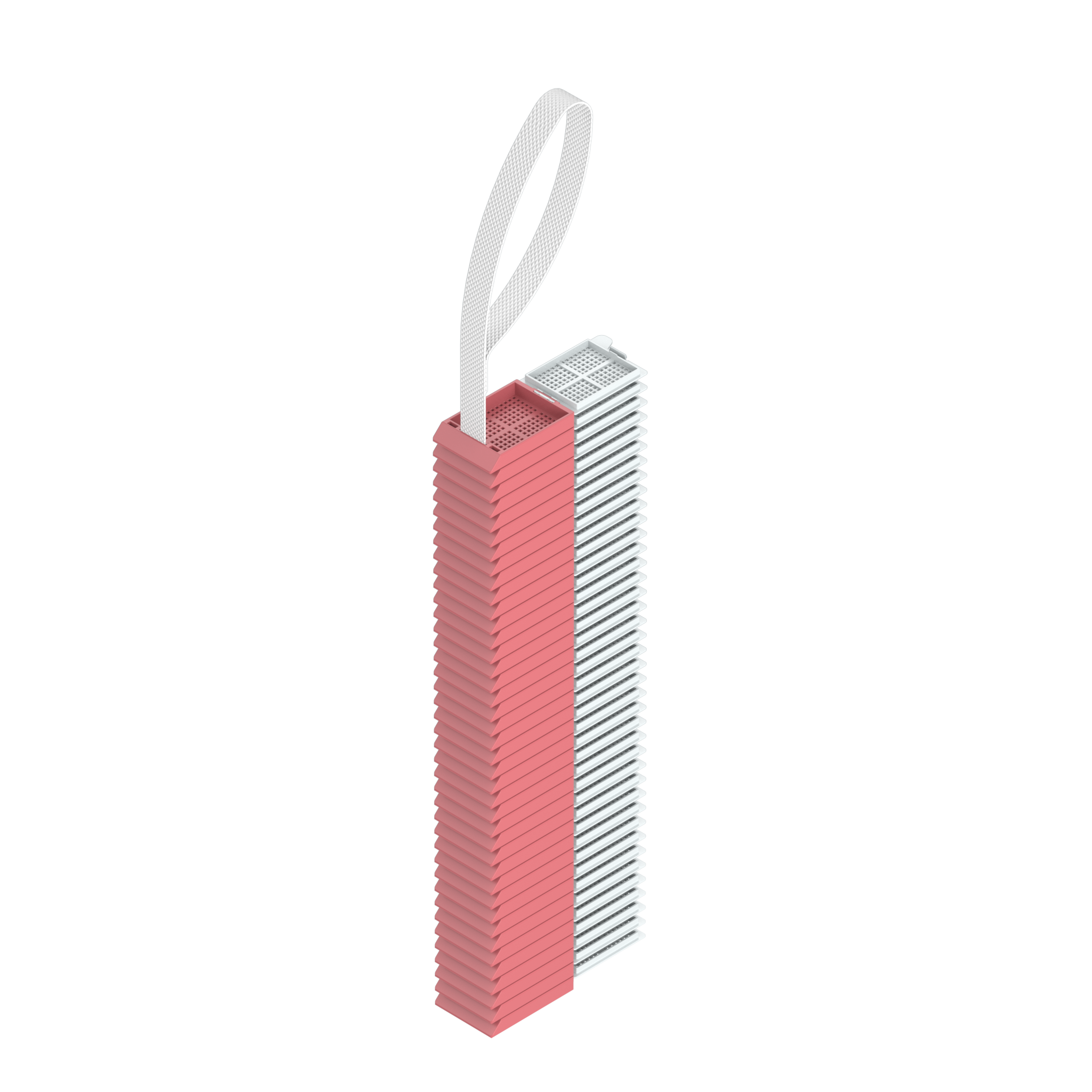 Die speziell für die Laserbeschriftung entwickelten Einbettkassetten sind für die Verwendung mit Laser-Kassettendruckern gebrauchsfertig an einem Band vorgestapelt. Auf einem Band sind 40 Einbettkassetten mit Deckel aufgefädelt.