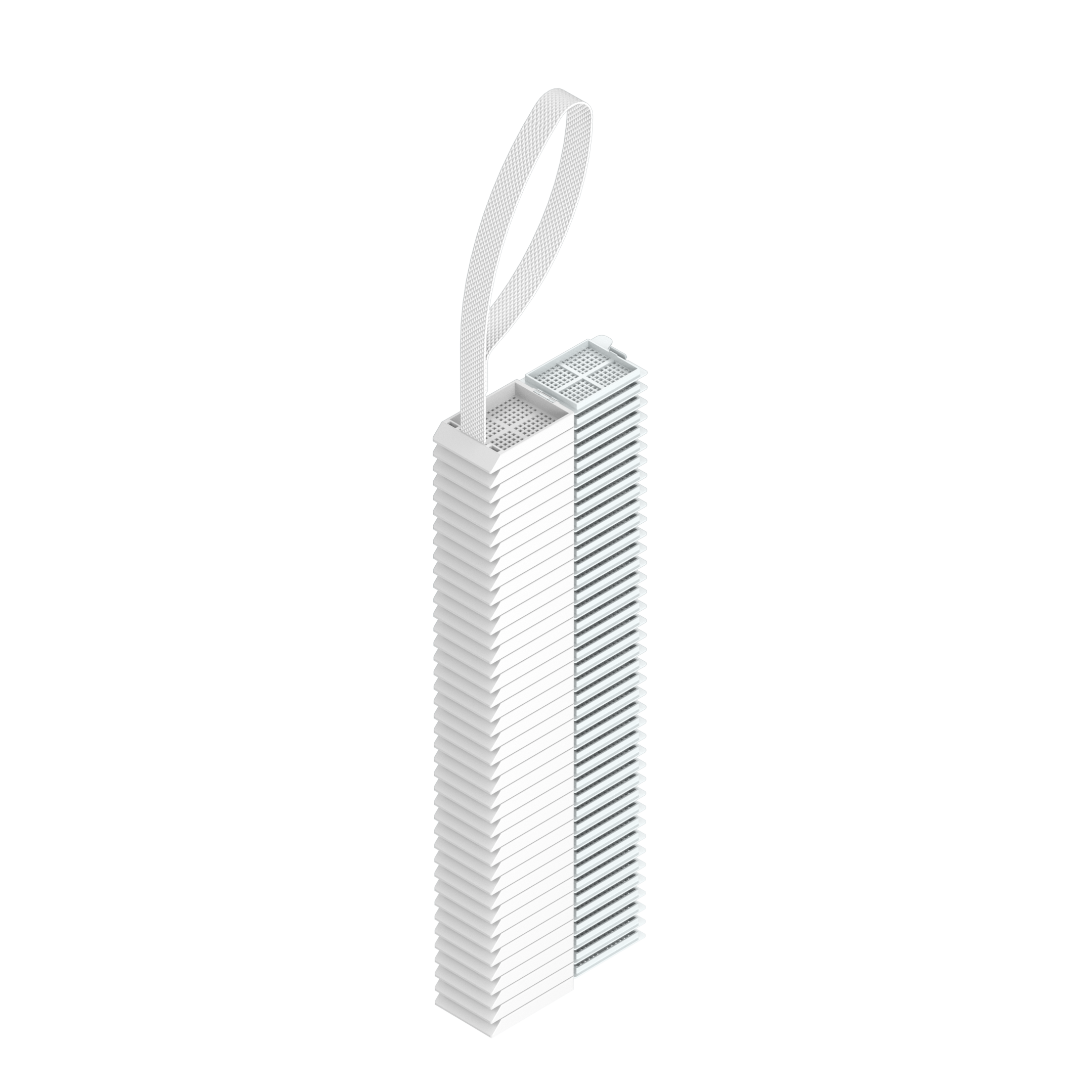 Die speziell für die Laserbeschriftung entwickelten Einbettkassetten sind für die Verwendung mit Laser-Kassettendruckern gebrauchsfertig an einem Band vorgestapelt. Auf einem Band sind 40 Einbettkassetten mit Deckel aufgefädelt.
