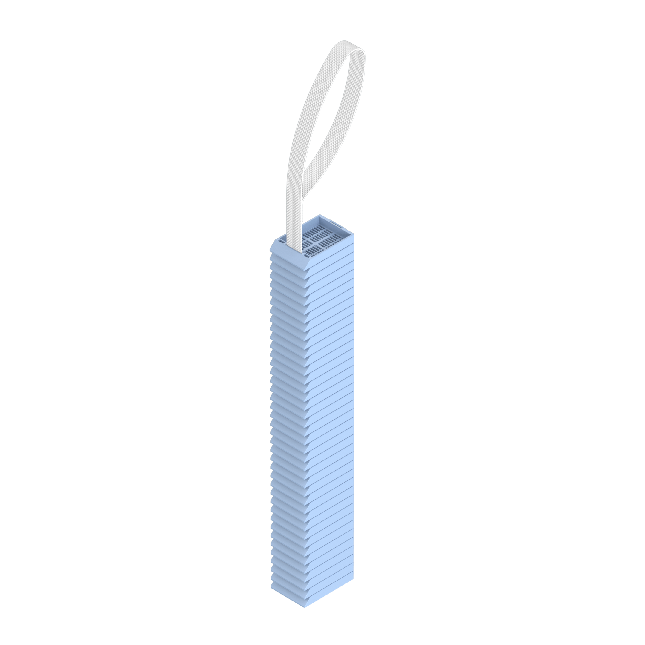 Die speziell für die Laserbeschriftung entwickelten Einbettkassetten sind für die Verwendung mit Laser-Kassettendruckern gebrauchsfertig an einem Band vorgestapelt. Auf einem Band sind 40 Einbettkassetten ohne Deckel aufgefädelt.